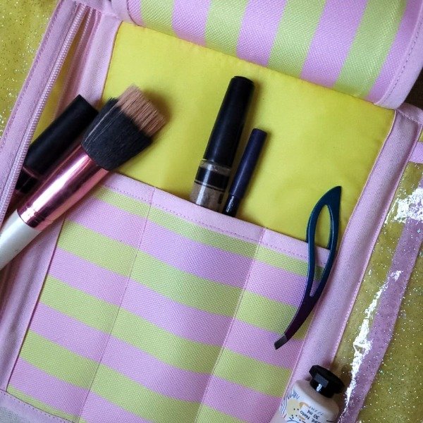 Cuenta con un bolsillo transparente con cierre, ideal para visualizar rápidamente los objetos guardados, y otro con broches, perfecto para acceder fácilmente a elementos de uso frecuente.
